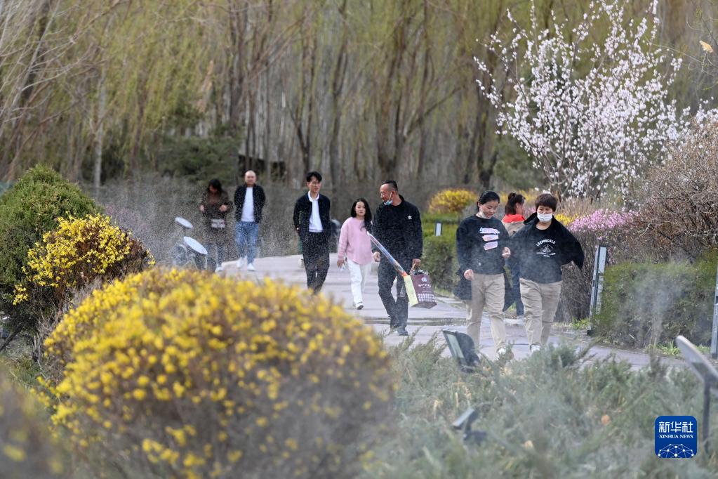 4月13日,游客在張掖市蘆水灣生態(tài)景區內參觀(guān)游覽。