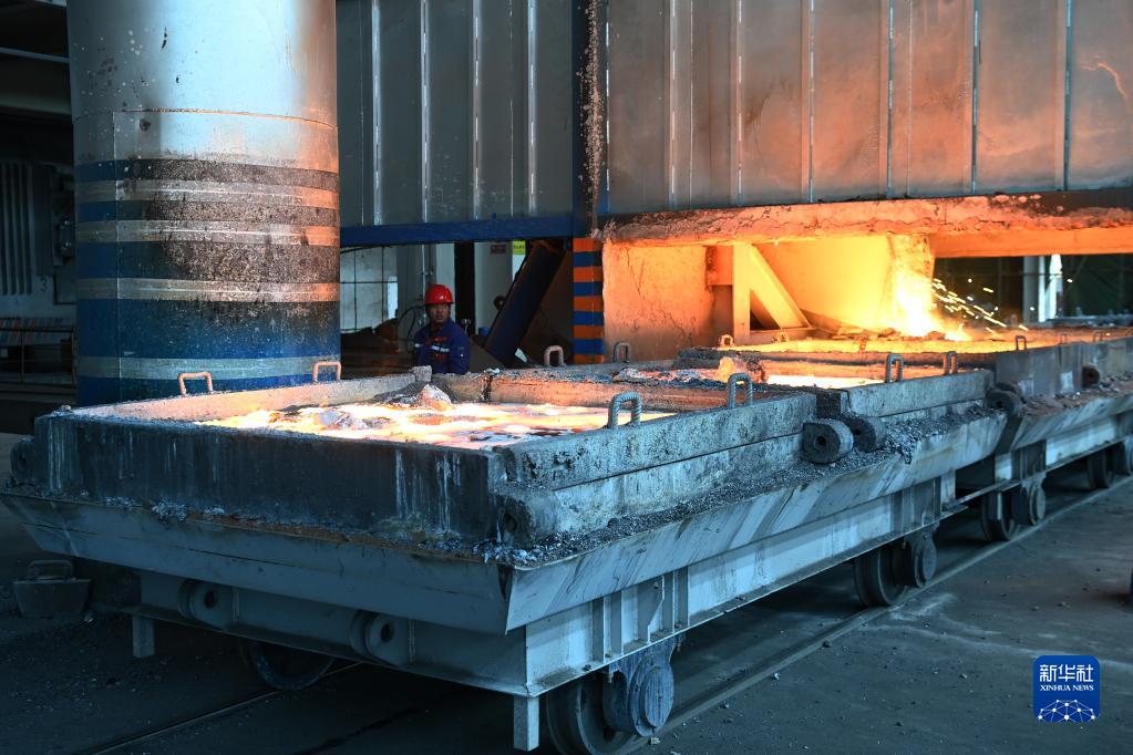 4月13日,工人在位于張掖市甘州區的20萬(wàn)噸硅系新材料綜合利用項目一期9萬(wàn)噸工業(yè)硅生產(chǎn)車(chē)間作業(yè)。