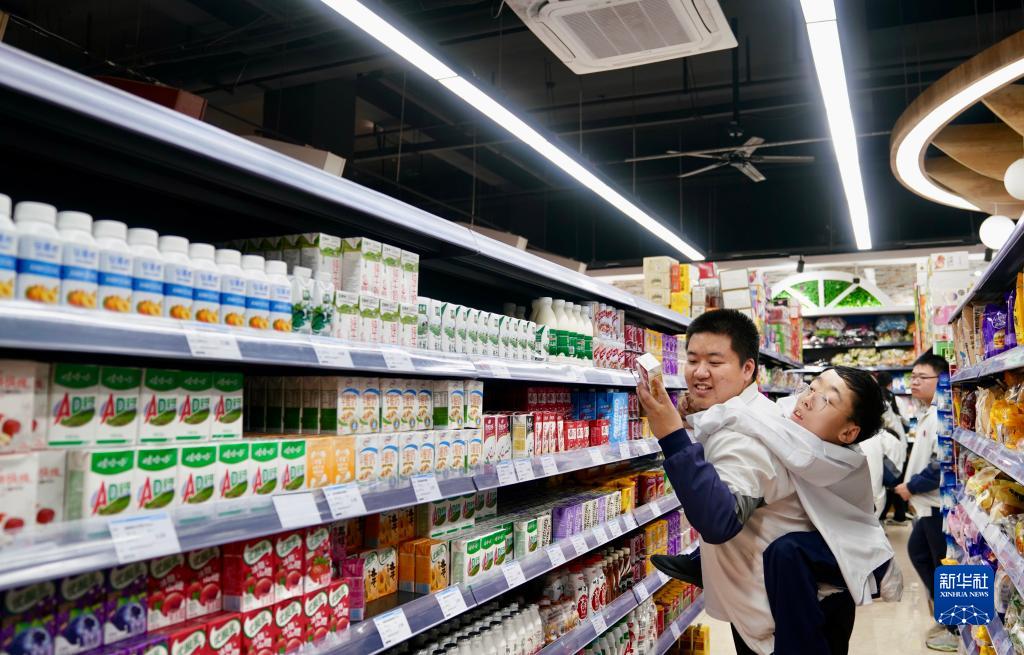 4月12日,朱金祥(左)背著(zhù)鐘華強在學(xué)校的超市內選購商品。