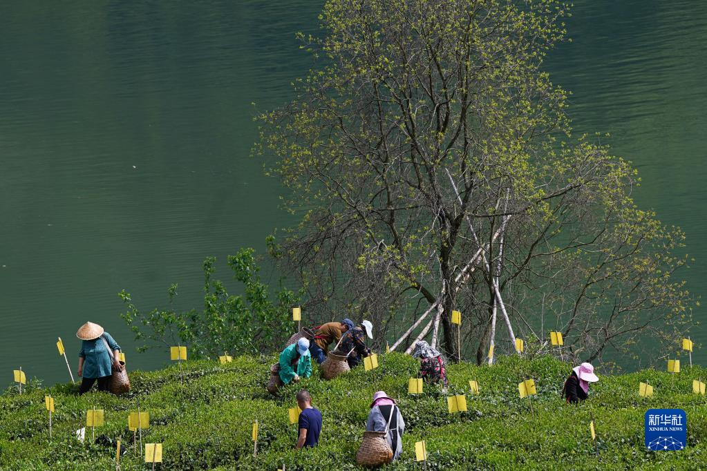 4月14日,在安徽省黃山市黃山區新明鄉猴坑村,茶農采摘太平猴魁鮮葉。