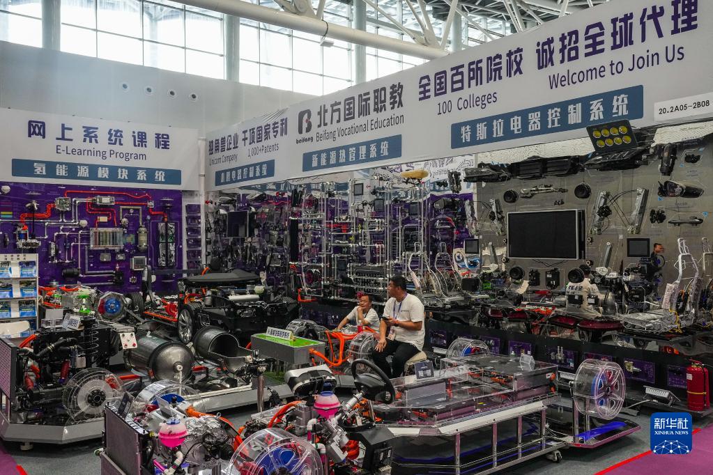 這是一家參展企業(yè)在新能源及智能網(wǎng)聯(lián)汽車(chē)出口展區設置的交易展臺(4月14日攝)。