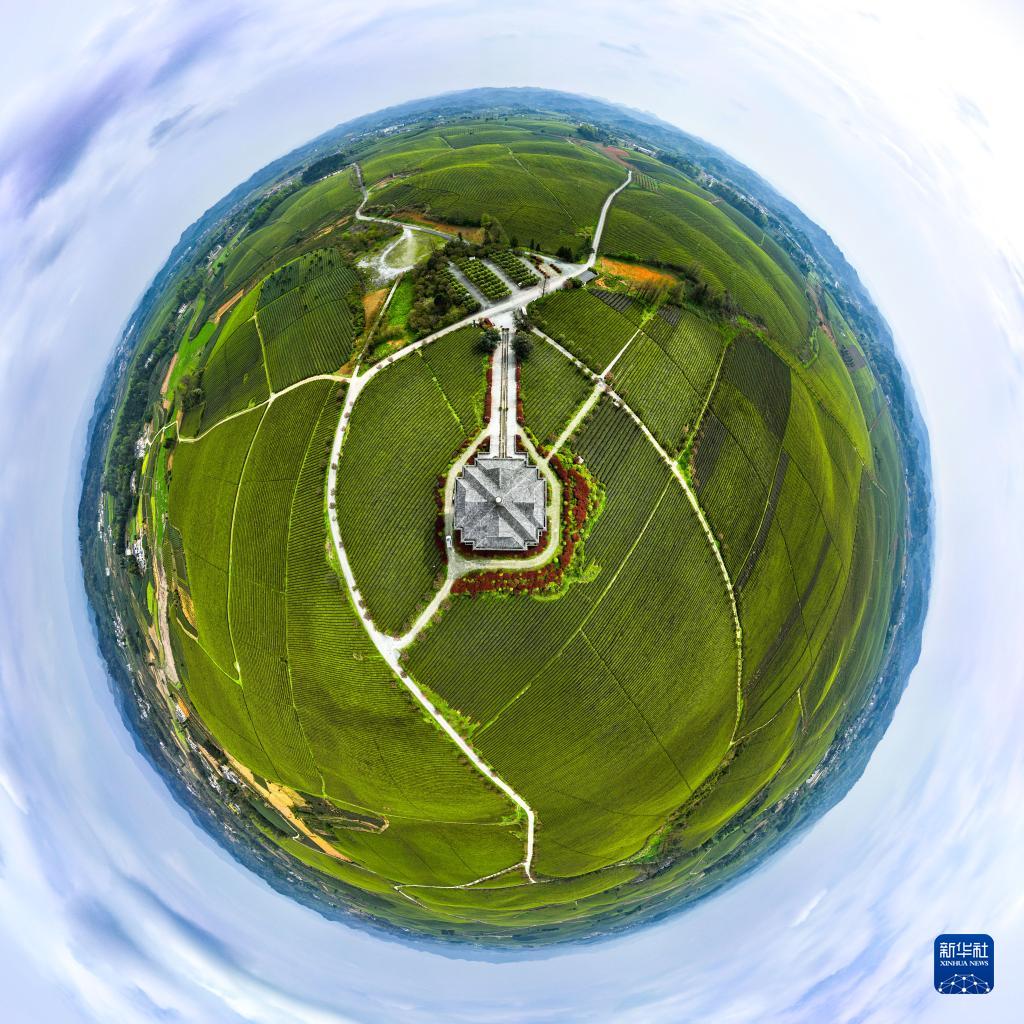 4月4日拍攝的遵義市湄潭縣永興鎮“萬(wàn)畝茶?!保o(wú)人機全景照片)。