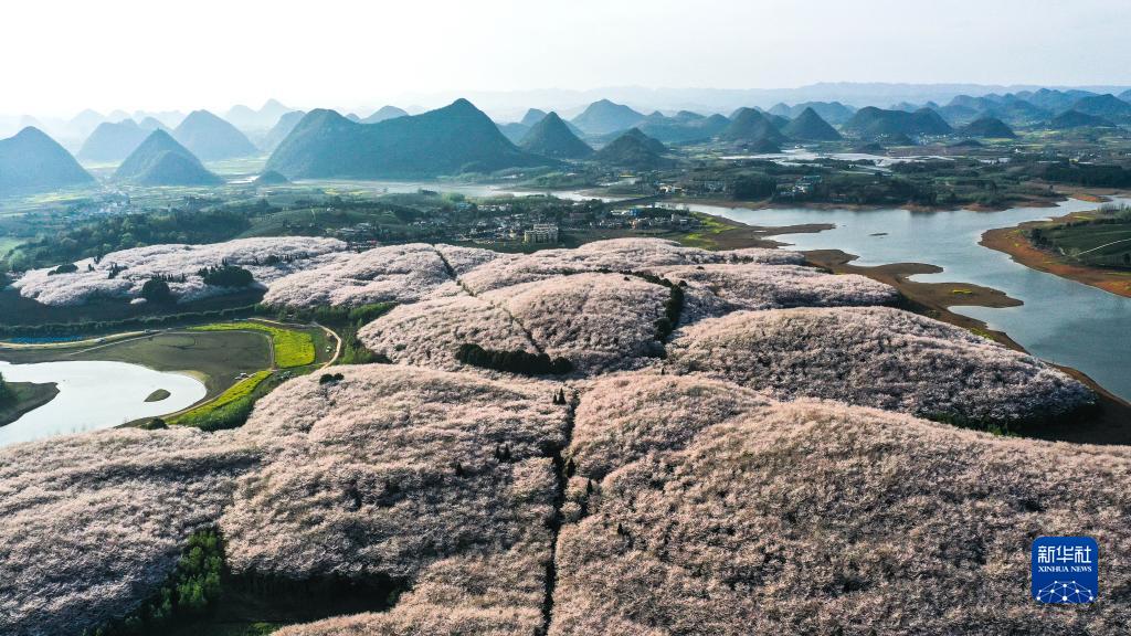 這是3月21日拍攝的貴州省貴安新區櫻花園(無(wú)人機照片)。
