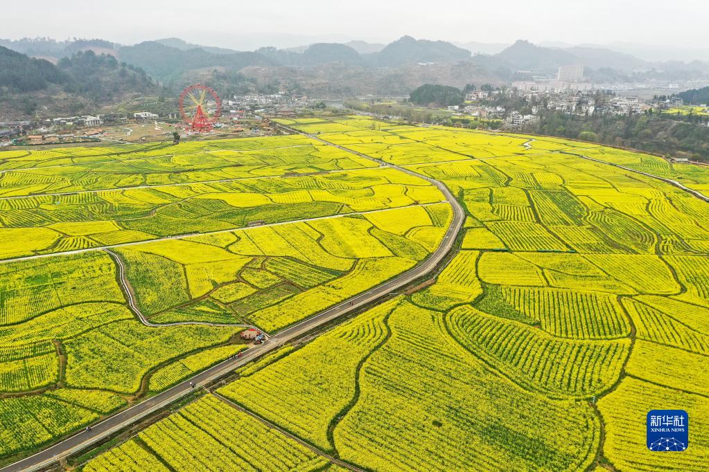 這是3月12日拍攝的貴州省貴定縣盤(pán)江鎮“金海雪山”景區油菜花海(無(wú)人機照片)。