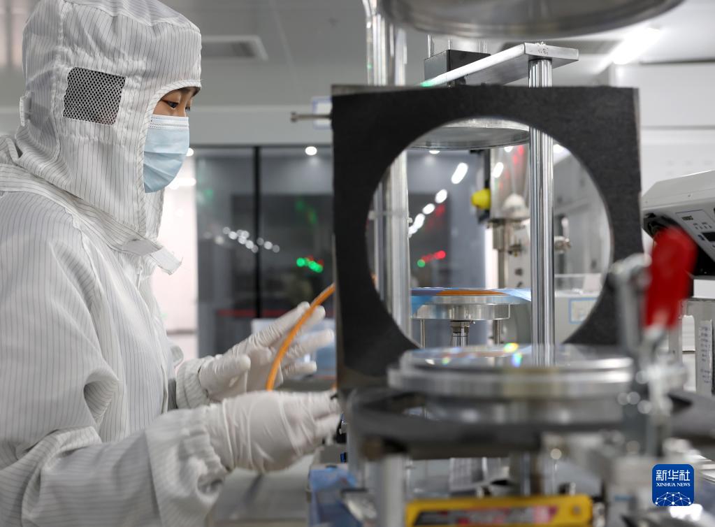 4月14日,一位工人在江蘇省射陽(yáng)縣江蘇暖陽(yáng)半導體科技公司LED芯片生產(chǎn)車(chē)間工作。