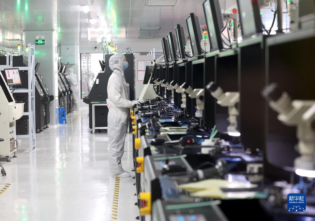 4月14日,一位工人在江蘇省射陽(yáng)縣江蘇暖陽(yáng)半導體科技公司LED芯片生產(chǎn)車(chē)間工作。
