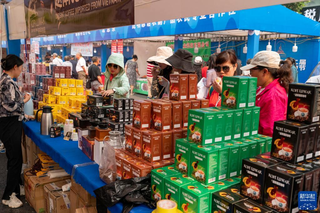 4月14日,游客在免稅購物節上選購咖啡。