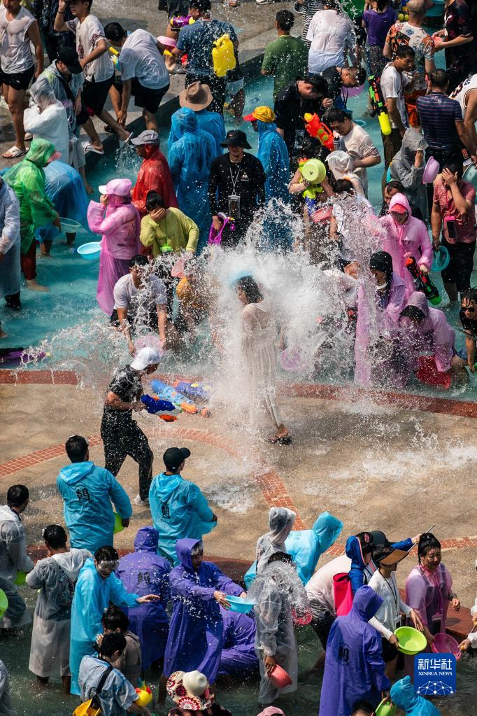 4月15日,人們在云南省西雙版納傣族自治州景洪市潑水廣場(chǎng)潑水狂歡。