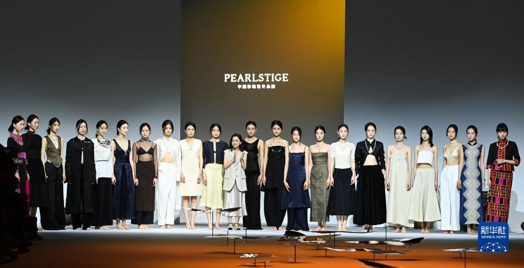 4月15日,在消博會(huì )時(shí)裝周主秀場(chǎng),模特在展示結束后同設計師向觀(guān)眾致意。