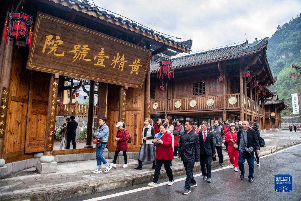4月13日,在重慶市石柱縣中益鄉,游客在參觀(guān)游玩。