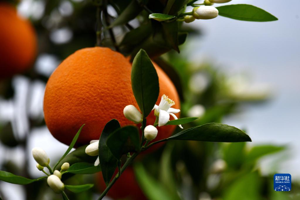 眼下,有“中國臍橙之鄉”美譽(yù)的三峽庫區湖北省秭歸縣長(cháng)江兩岸橙花盛開(kāi),晚熟臍橙掛滿(mǎn)枝頭,花果同樹(shù)的橙樹(shù)與峽江景觀(guān)相映如畫(huà)。