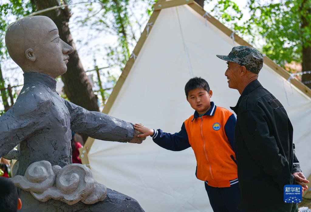 4月15日,村民在“2023下苑藝術(shù)生活季”活動(dòng)現場(chǎng)觀(guān)看雕塑作品。