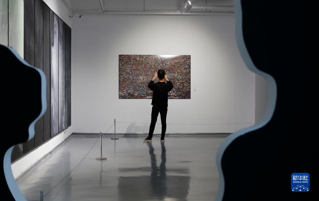 4月15日,觀(guān)眾在“2023第六屆蘇州·金雞湖雙年展”上參觀(guān)拍攝藝術(shù)作品。