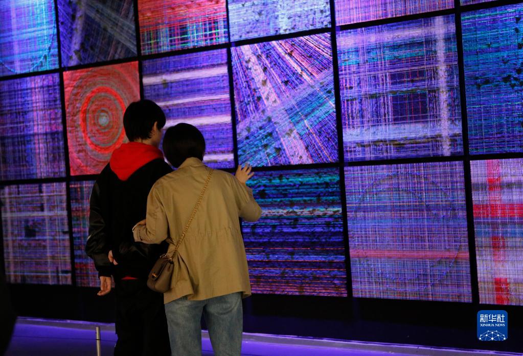 4月15日,觀(guān)眾在“2023第六屆蘇州·金雞湖雙年展”上參觀(guān)藝術(shù)作品。