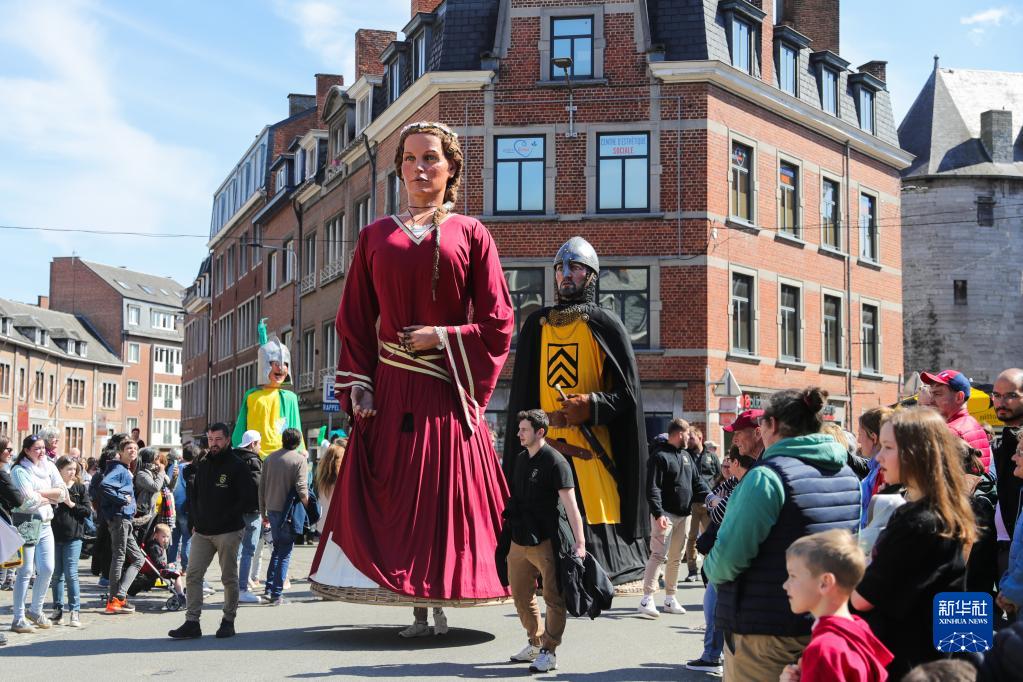 4月15日,裝扮成“巨人”的演員在比利時(shí)那慕爾市傳統民俗日活動(dòng)上為觀(guān)眾表演。