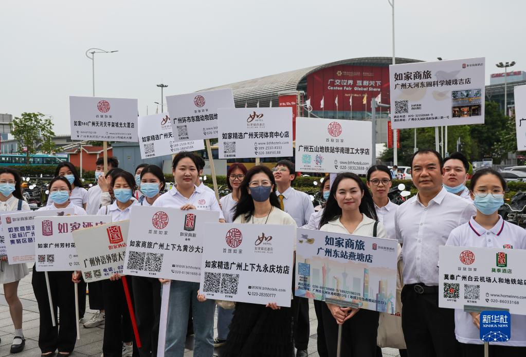 4月15日,酒店服務(wù)商在廣交會(huì )展館外集中指引賓客乘坐巴士返回酒店。