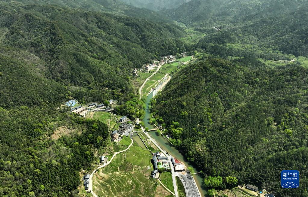 九嶺山環(huán)抱中的港背村(4月7日攝,無(wú)人機照片)。