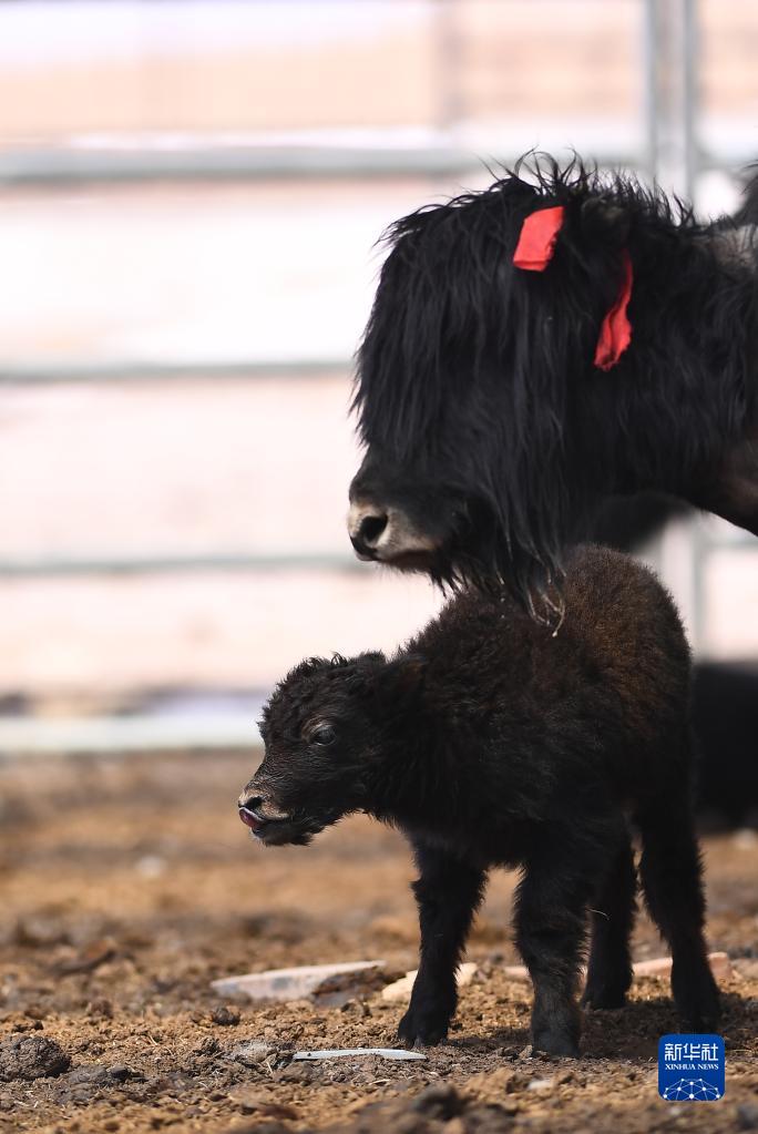 這是4月14日拍攝的剛察縣環(huán)湖型牦牛良種繁育基地內的環(huán)湖型長(cháng)毛牦牛。