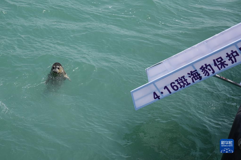 4月16日,被放歸的西太平洋斑海豹在大連市旅順口區附近海域活動(dòng)。