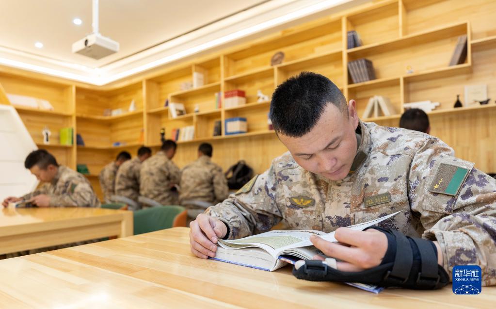 4月13日,邊防連戰士在圖書(shū)室閱讀。