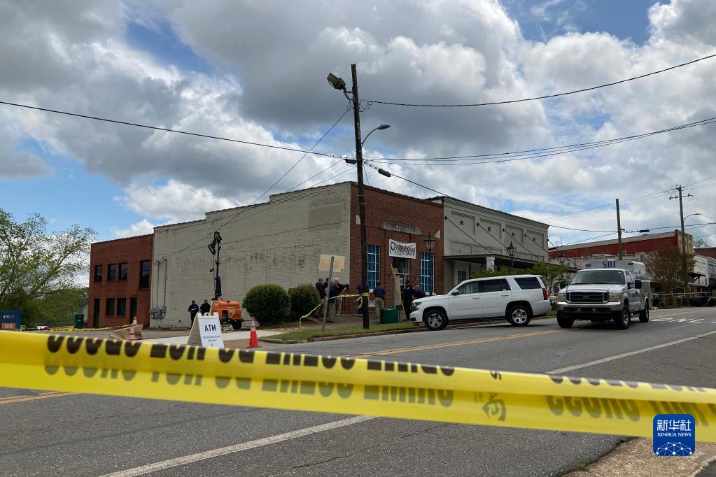 這是4月16日在美國亞拉巴馬州戴德維爾拍攝的槍擊事件現場(chǎng)。