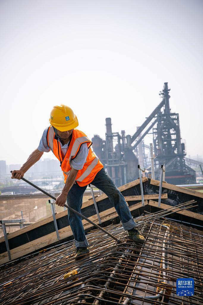 4月17日,中建三局的建筑工人在杭鋼工業(yè)舊址綜保項目一期工程現場(chǎng)施工。