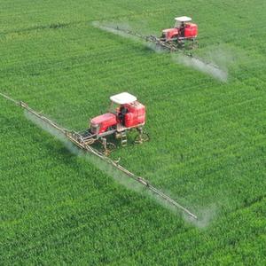 4月19日,河北省邢臺市南和區河郭鎮張相村農民使用農業(yè)機械在麥田噴灑農藥(無(wú)人機照片)。