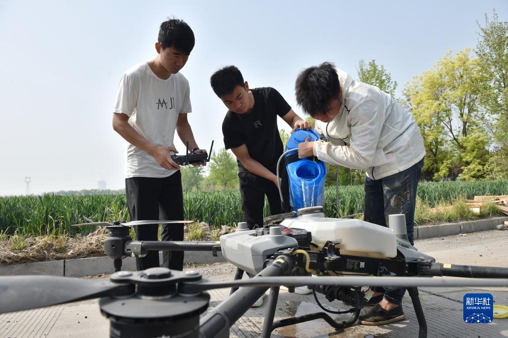 4月19日,河北省邢臺市南和區河郭鎮張相村農民為植保無(wú)人機添加農藥。