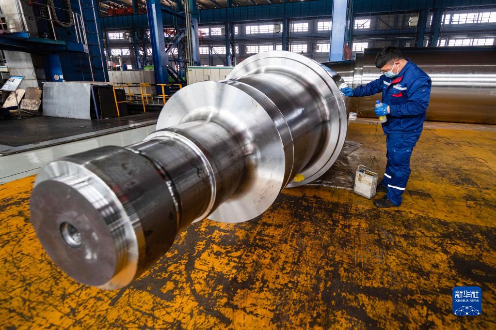 4月18日,工人在位于黑龍江省齊齊哈爾市的中國一重生產(chǎn)車(chē)間進(jìn)行生產(chǎn)作業(yè)。