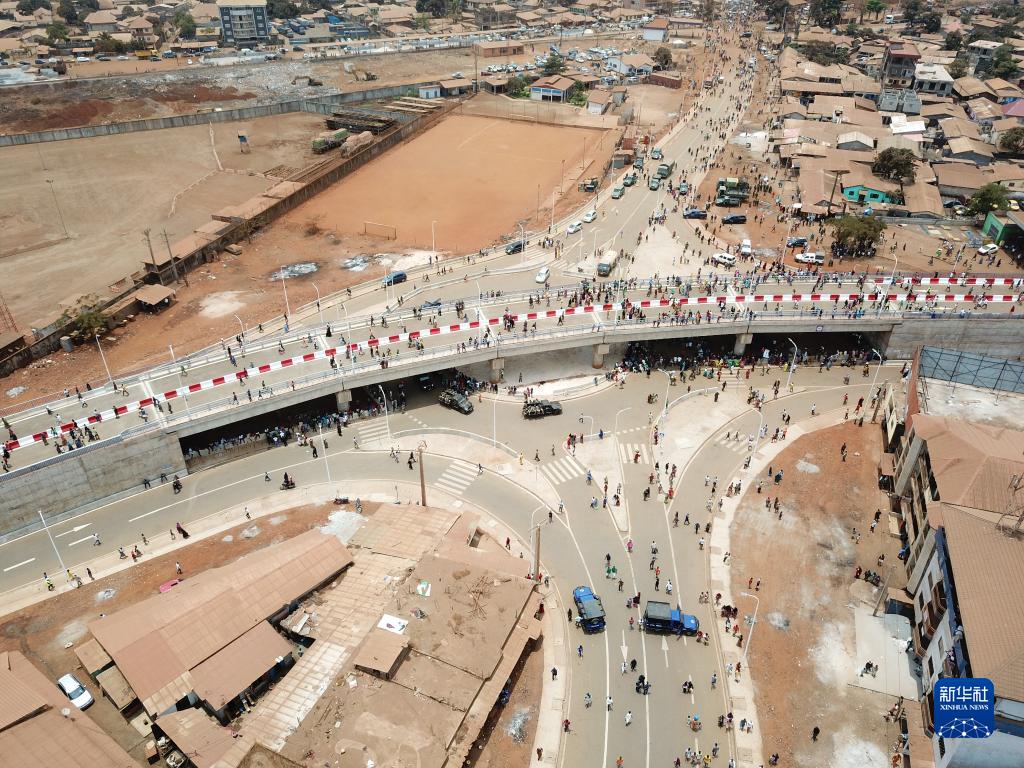 由中國企業(yè)承建的幾內亞科納克里卡格貝倫立交橋18日竣工通車(chē)。