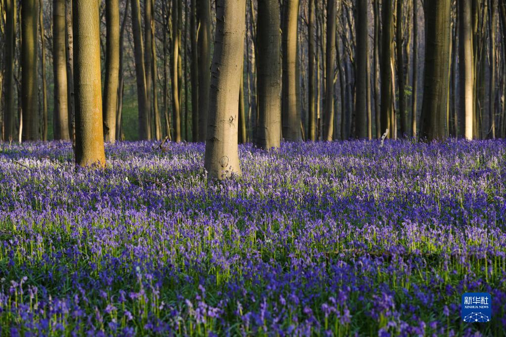 這是4月19日在比利時(shí)哈勒市附近的哈勒森林拍攝的藍鈴花。