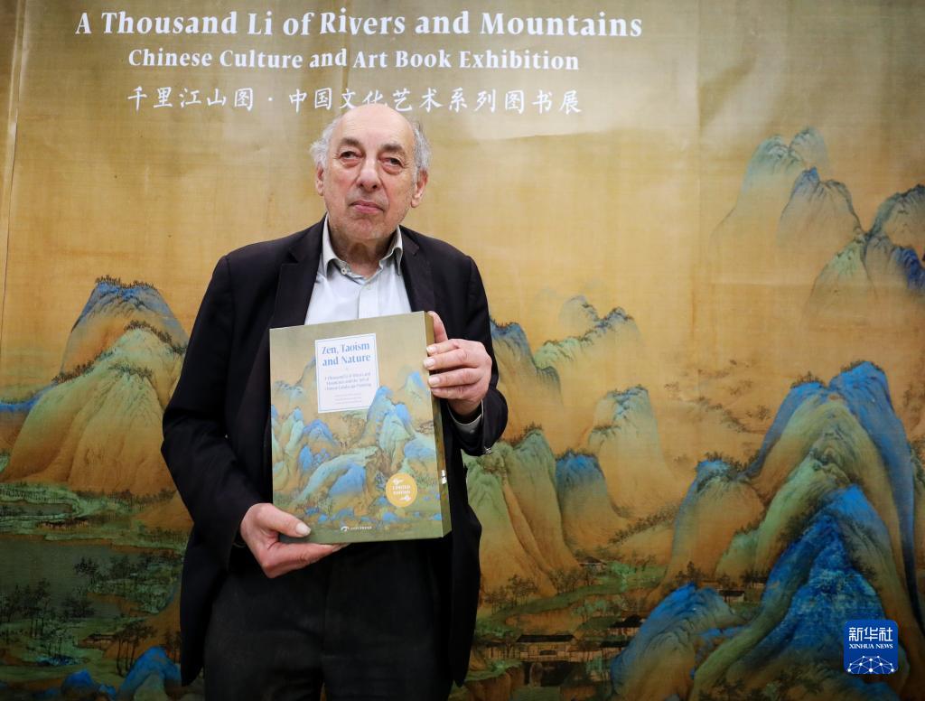 4月18日,在英國倫敦,一名讀者在倫敦書(shū)展上參加《千里江山圖》藝術(shù)展。新華社記者 李穎 攝