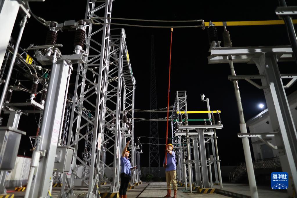 4月19日,貴陽(yáng)供電段工作人員在都勻東站變電所進(jìn)行驗電操作。