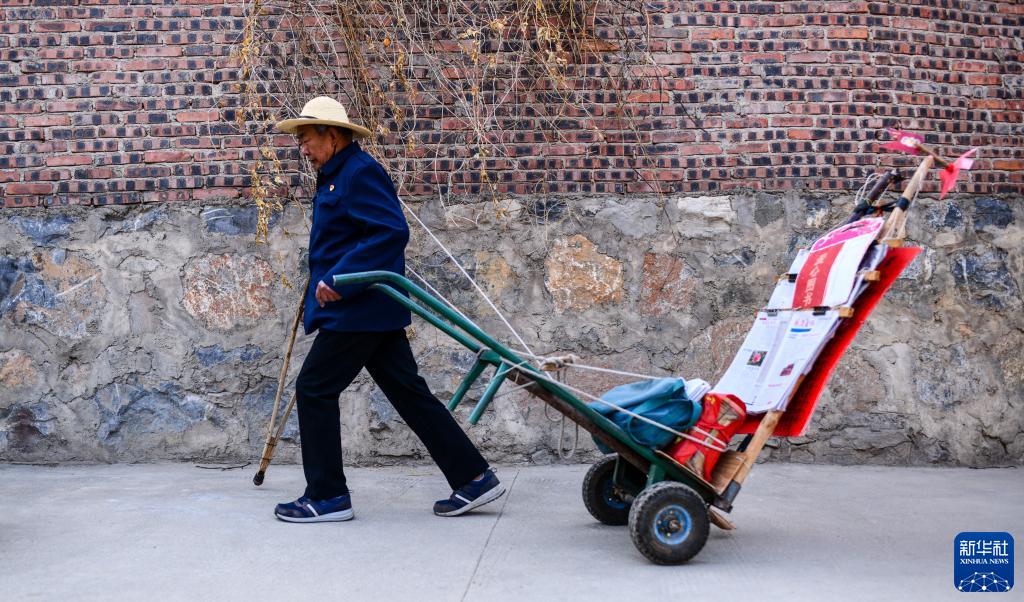 4月19日,李存德拉著(zhù)車(chē)前往農家書(shū)屋裝書(shū),準備出攤。新華社記者 江文耀 攝
