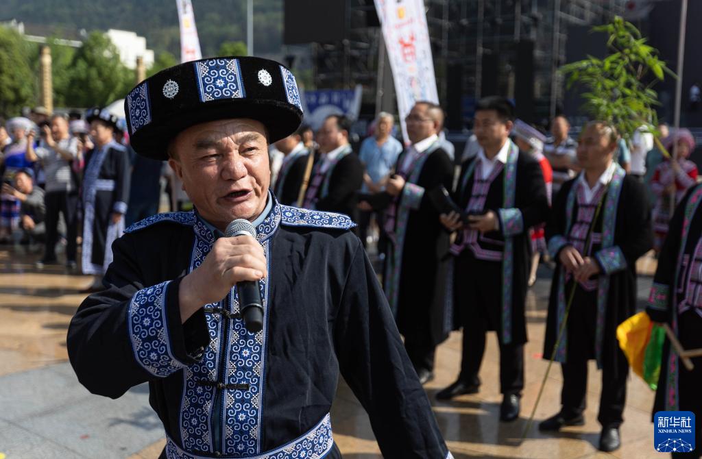 當日,四川省級非遺“興文苗族花山節”展示傳承活動(dòng)在四川省興文縣市民廣場(chǎng)舉行?;顒?dòng)上融入傳統祭祀、農耕文化、民族團結等內容的展演和苗家長(cháng)桌美食宴,讓賓客感受到熱烈的節日氛圍。