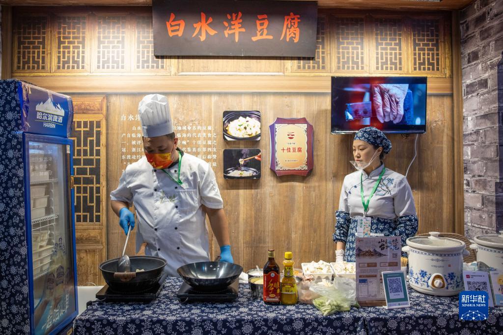 4月20日,廚師在“味美浙江”餐飲消費歡樂(lè )季現場(chǎng)制作特色小吃。