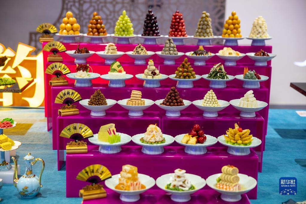 在“味美浙江”餐飲消費歡樂(lè )季現場(chǎng)展示的浙江地方特色小吃(4月20日攝)。