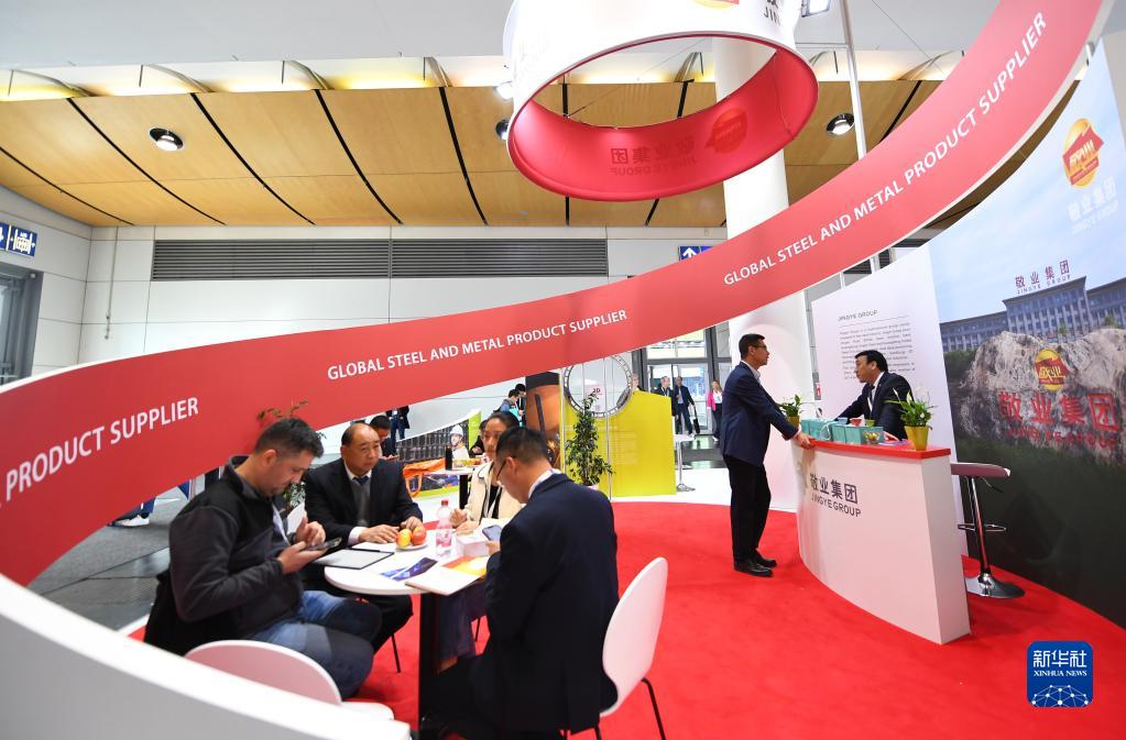 這是4月19日在德國漢諾威工博會(huì )上拍攝的敬業(yè)集團展區。
