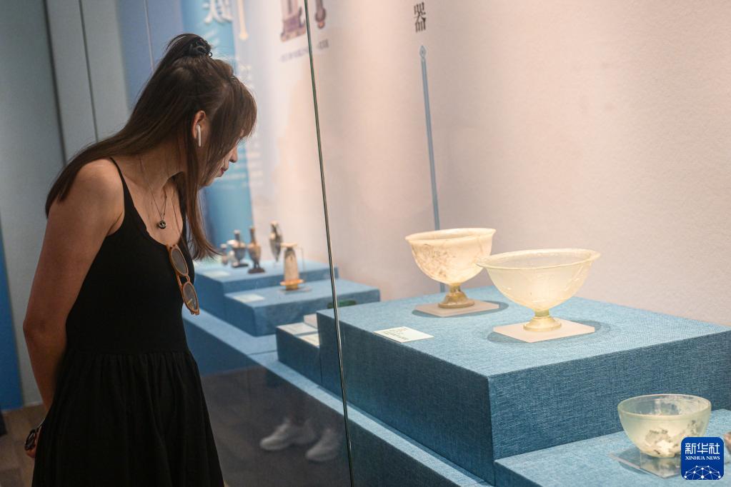 4月20日,觀(guān)眾在海南省博物館觀(guān)看“瑠光異彩——絲路上的古玻璃器藝術(shù)展”。