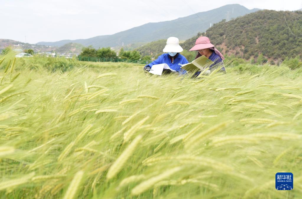 4月20日,在云南省麗江市古城區金山街道新團社區,農技人員在麥田里開(kāi)展田間調查。