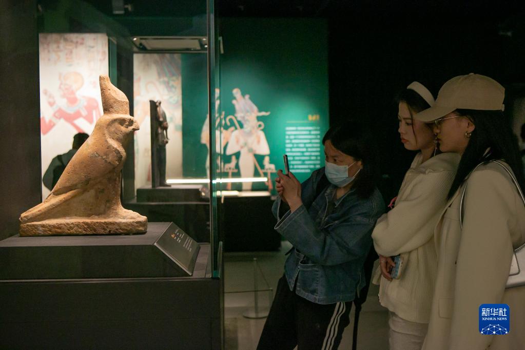4月20日,觀(guān)眾在展覽上觀(guān)看荷魯斯雕像。