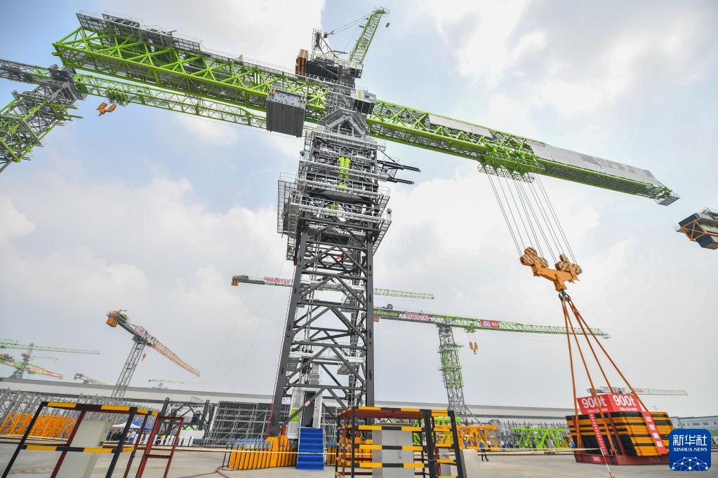 這是4月20日拍攝的中聯(lián)重科R20000-720塔式起重機。
