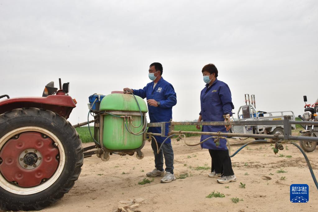 4月20日,張戰強夫婦在調試噴藥機。