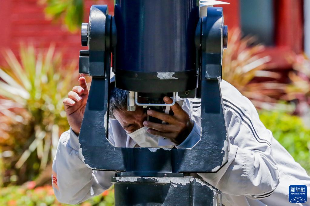 4月20日,一名男子在菲律賓奎松市觀(guān)測日食。