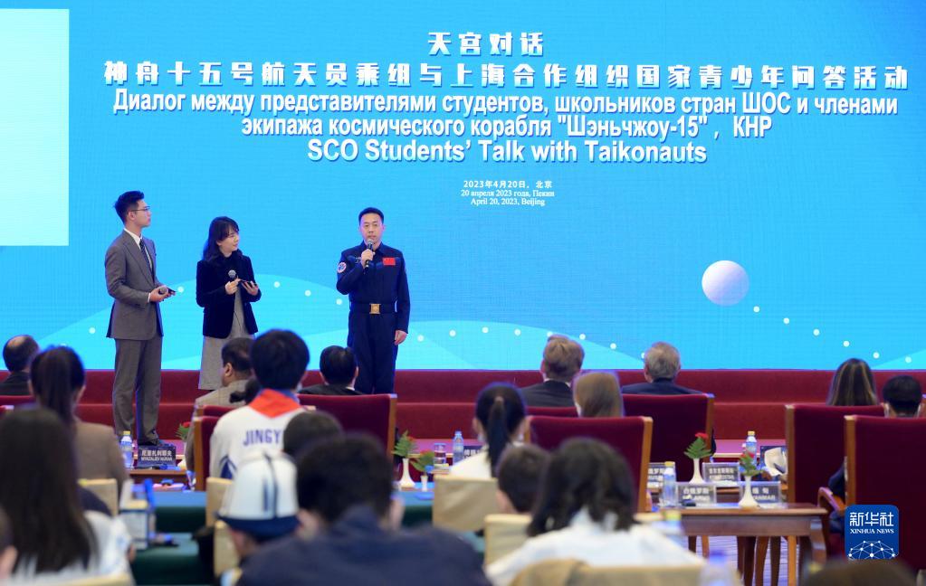 4月20日,神舟十四號航天員蔡旭哲(右)出席北京主會(huì )場(chǎng)活動(dòng)。新華社記者 李賀 攝