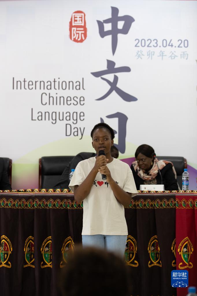 4月20日,在贊比亞首都盧薩卡,一名學(xué)生在聯(lián)合國中文日活動(dòng)上表演朗誦。
