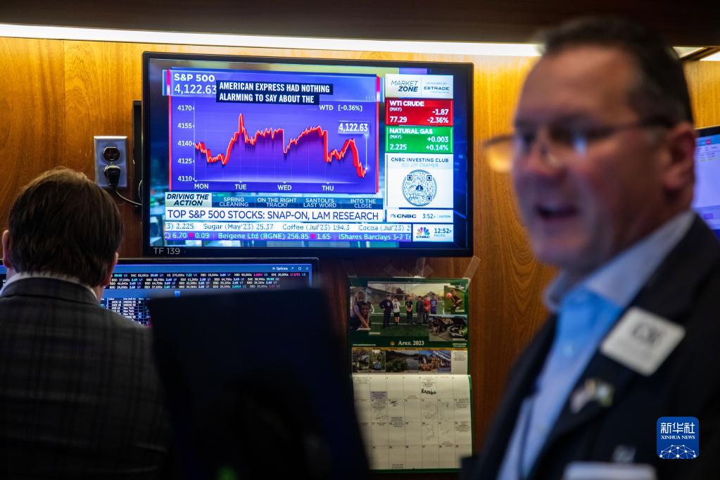 4月20日,美國紐約證券交易所屏幕上顯示股票指數信息。