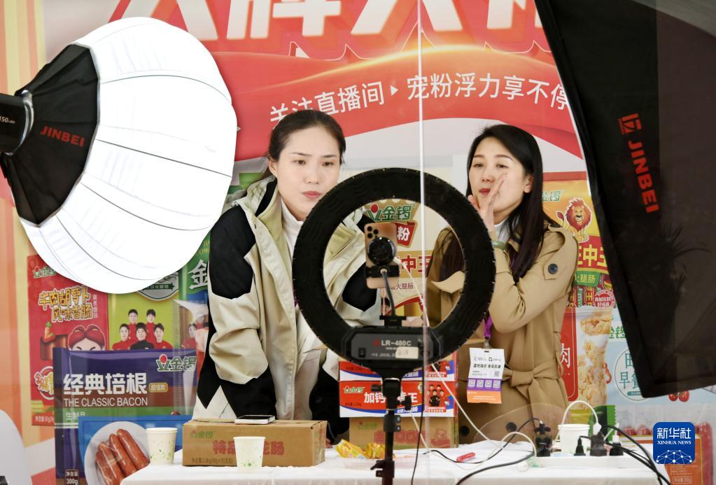 4月21日,一參展企業(yè)工作人員在展會(huì )上直播。