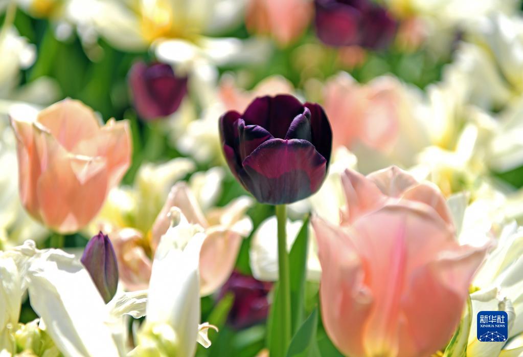 4月20日,美國紐約的一處花園郁金香盛開(kāi)。