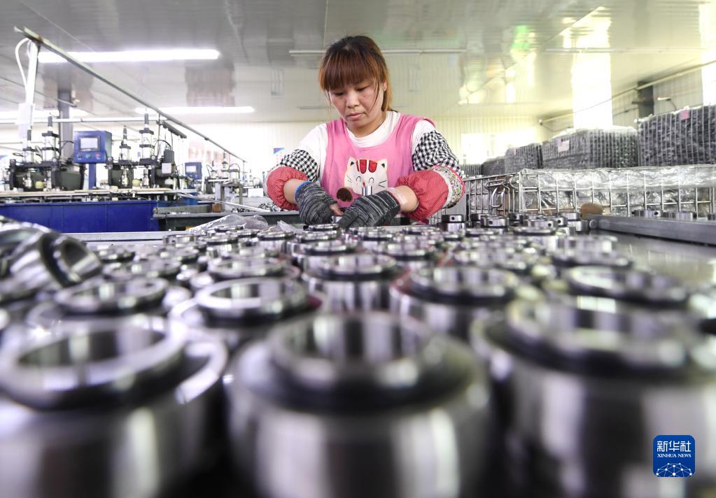 4月21日,河北臨西縣一家軸承生產(chǎn)制造企業(yè)工人在生產(chǎn)車(chē)間工作。